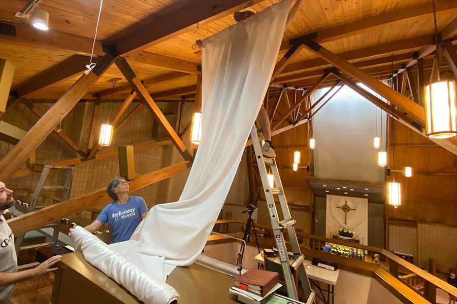 Follow our progress in the rear of the church